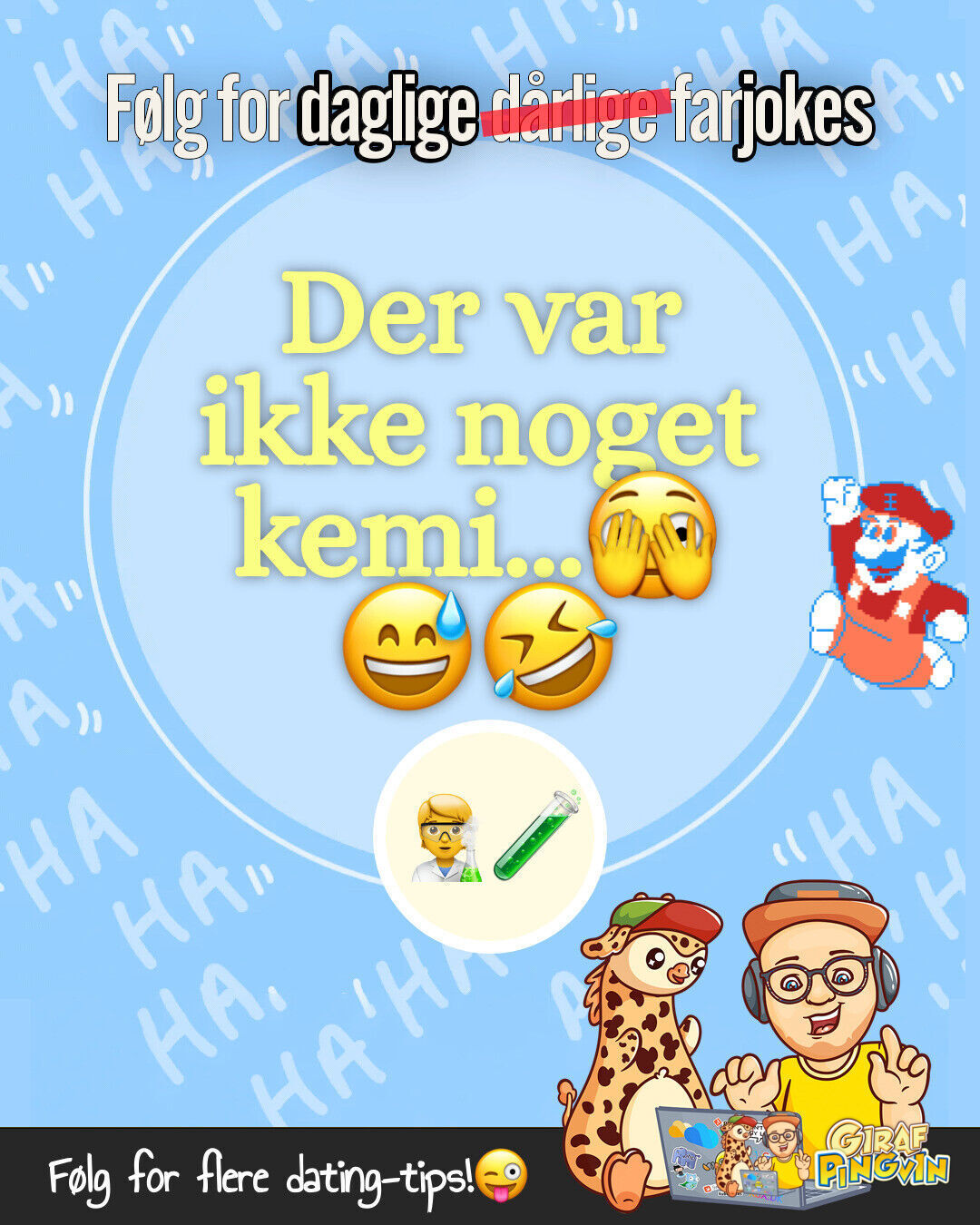 Når biologer og fysikere går fra hinanden: Totalt mangel på kemi! 😂🧑🏻🔬🧪 Få flere datingtips fra din lokale girafpingvin! 😜🦒🐧