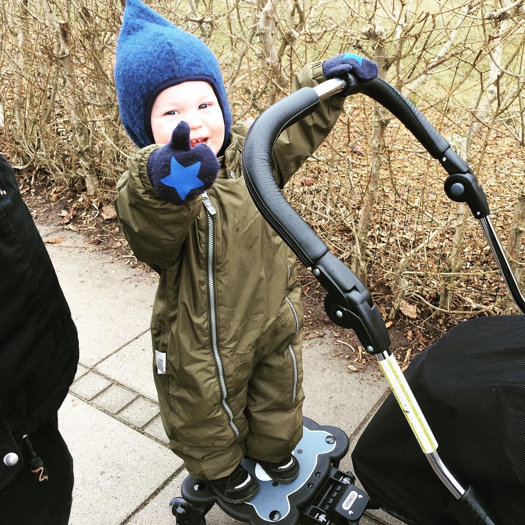 Test af vores nye skateboard Vi er i gang med at teste vores nye skateboard. Magnus elsker det 👶🏻💪🏻❤️🎉🎯 #thumbsup #stroller #kid #boy #easter #walk #walking