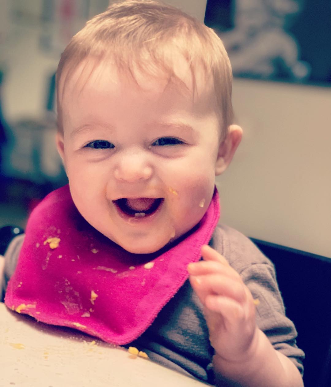 Madglæde i fuld flor! 🍽️😍 Babypigen elsker hver en bid – for mad er vejen til hjertet! 🍼💞
