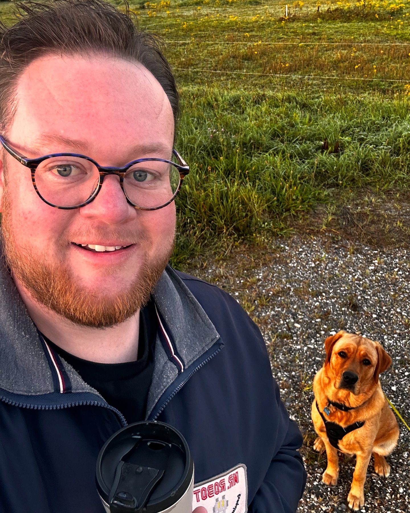 Photo by girafpingvin (Daniel Bahl)🦒️🐧️ on August 29, 2024. May be a selfie of 1 person, golden retriever and Indian paintbrush.