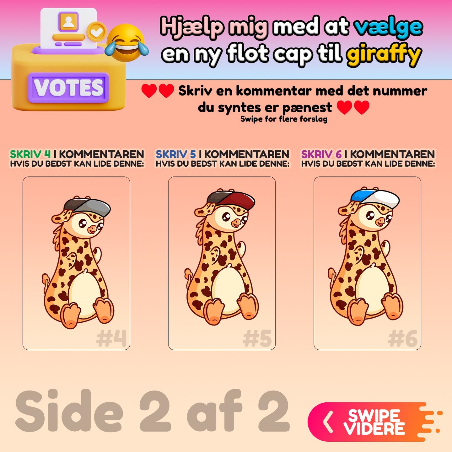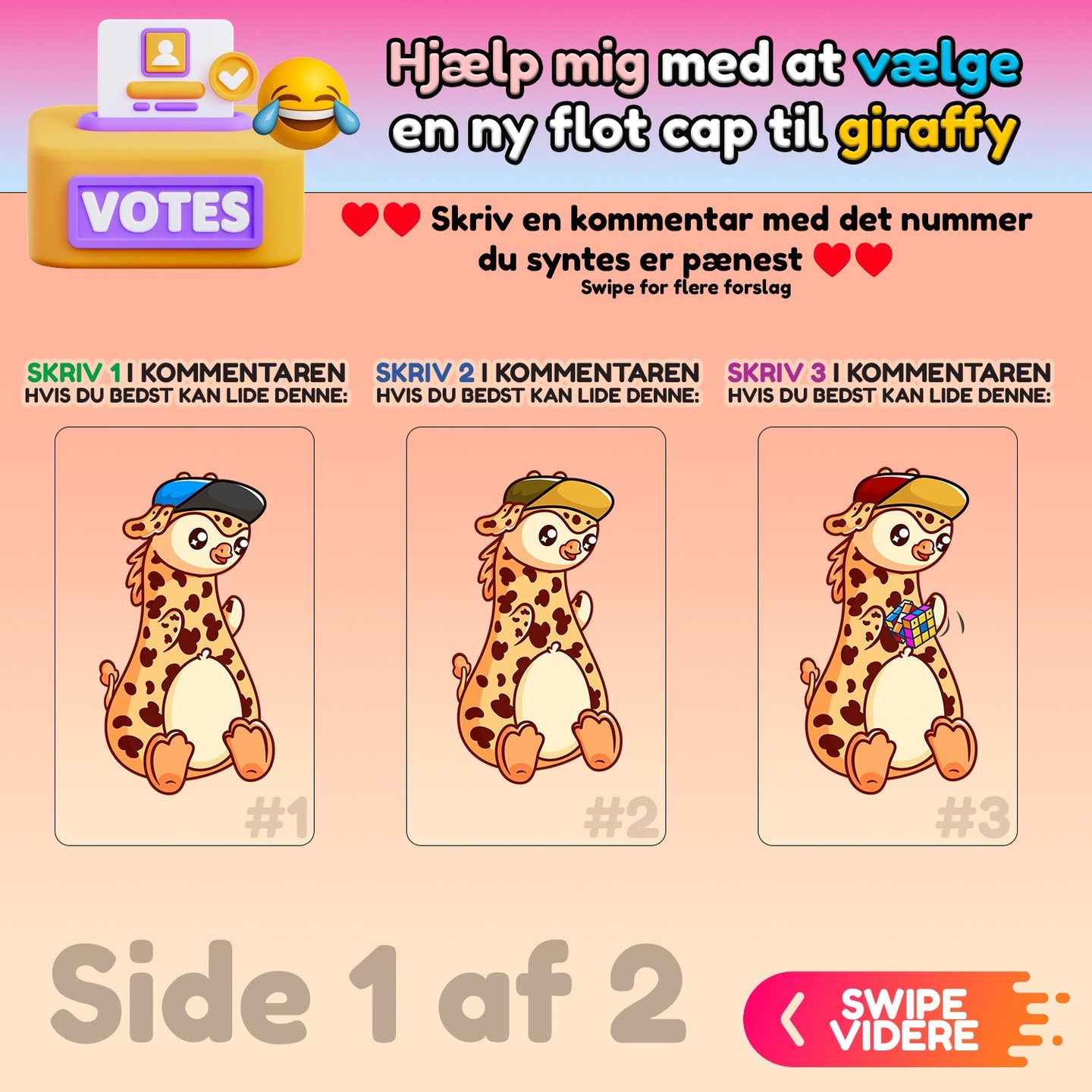 Skriv meget gerne i kommentaren den cap du foretrækker 🙏 🌼 Jeg sætter vildt stor pris på jeres hjælp 💛 TAAAK VENNER 🍀