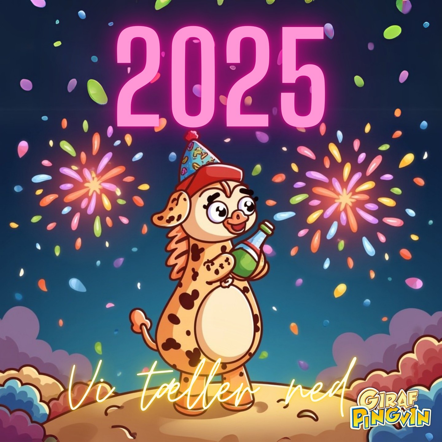 🎆 Vi nedtæller timerne til kl. 00 ⏳, hvor vi træder ind i det nye år med fest og farver! 🍾🎉 Girafpingvin er iklædt sin bedste nytårshat og klar til at sætte gang i fyrværkeri og festlighederne. Er du klar til at fejre i aften? 🚀🤩