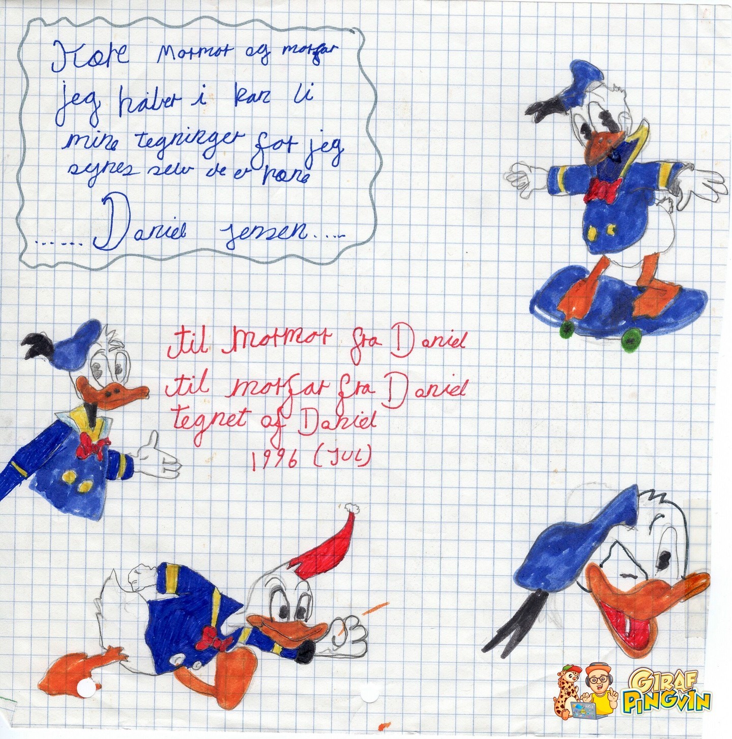 Snublede over denne tegning til mormor og morfar fra 27 år siden ❤️⭐ Genskabte barndommens magi og stolthed 🥰😍 Klar til næste kapitel 🦒🐧