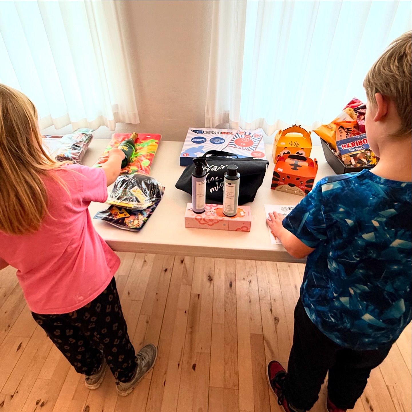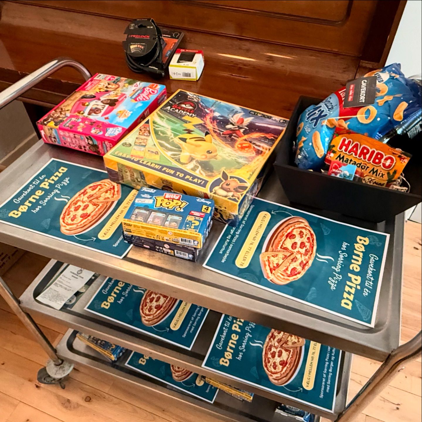 Tilde nappede hele tre store poser Haribo og et gavekort til den lokale pizzamand (med ananas, selvfølgelig)!