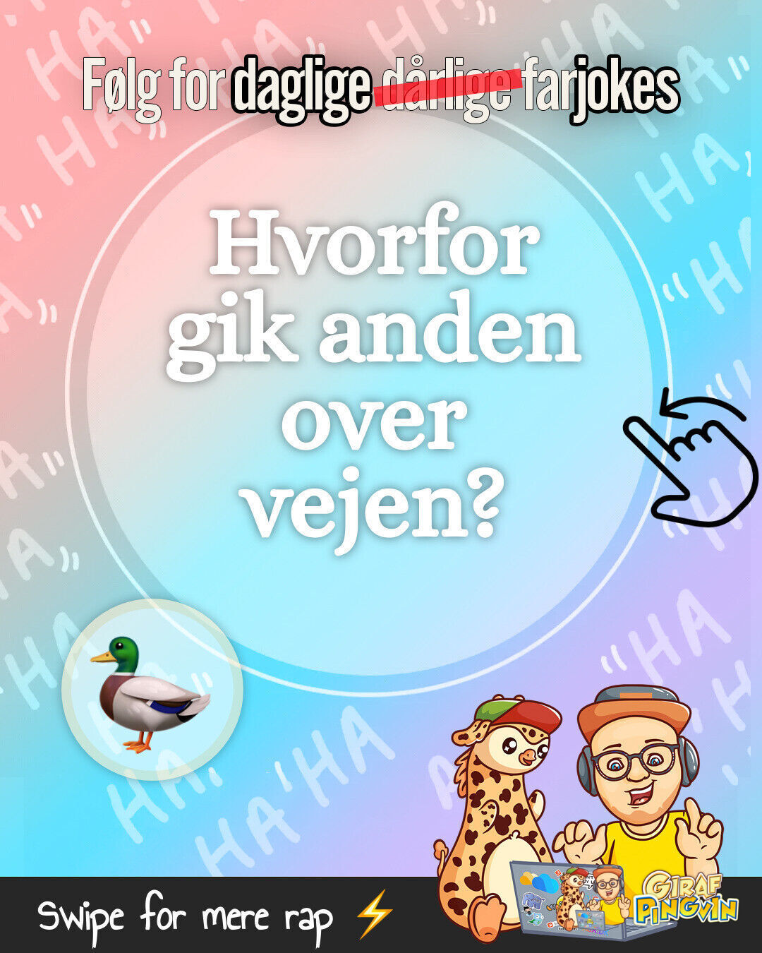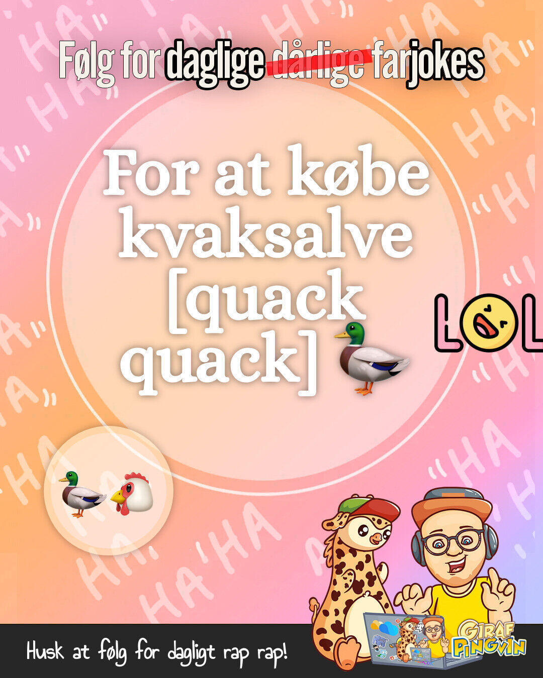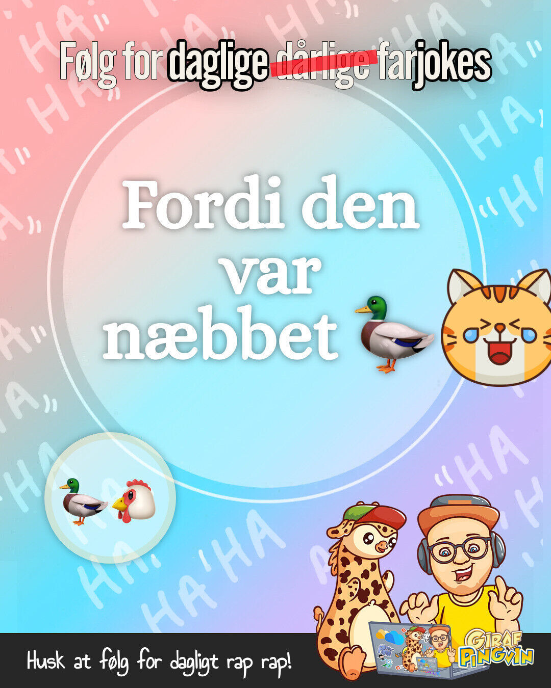 Men vent vent, der er mere... Mรฅske gik den over vejen, fordi den simpelthen var nรฆbbet - du ved, den skulle nok over og kรธbe kvaksalver ๐ฆ๐