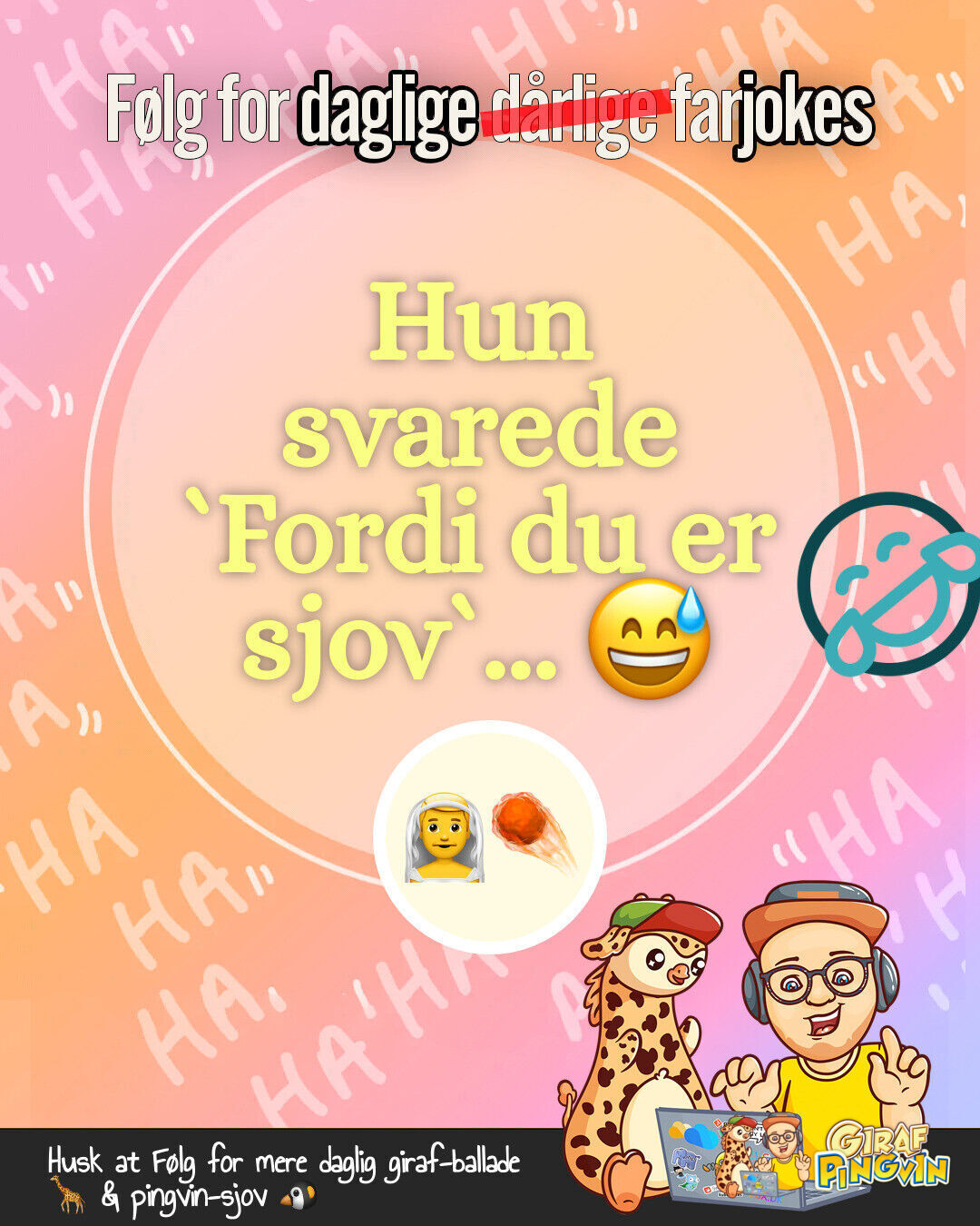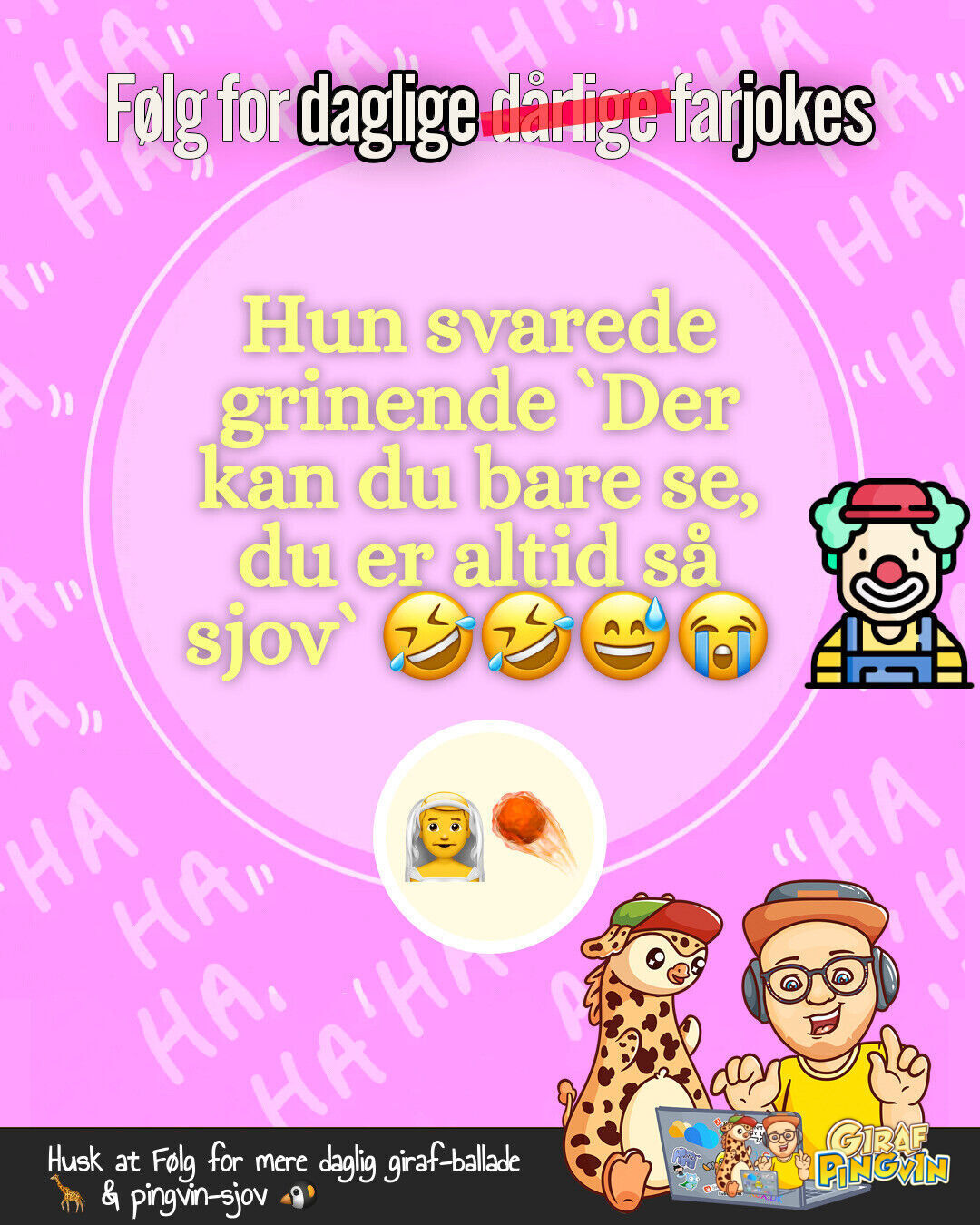 Hej alle mine girafpingvin followers! 🦒❤️🐧 Min kone har lige erklæret mig for den sjoveste mand i byen - på bekostning af mit overskud i soveværelset! 🛏️😅💔