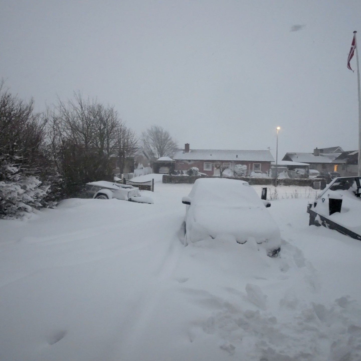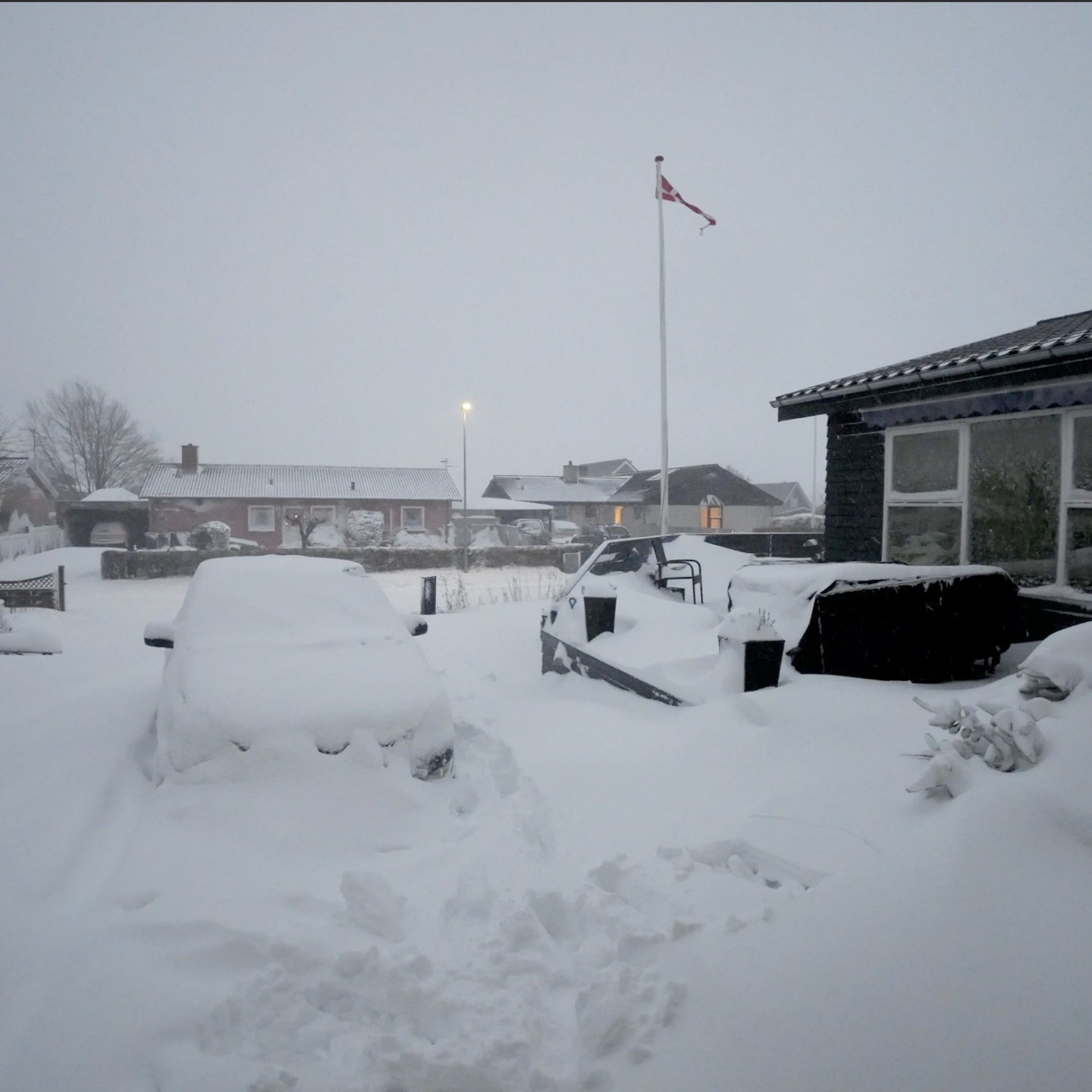 Snevejr vandt! 😂 Efter 300m opgav jeg snegåturen. Måske skitur er løsningen? Kender du en god bakke? 🏔️⛷️