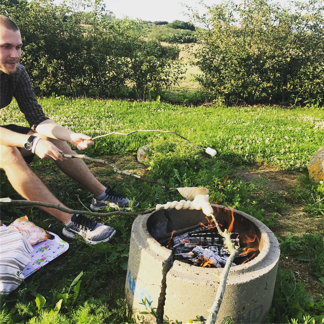 Bål. Hygge. Snobrød. Gode venner. Fantastisk sommervejr. Jeg elsker det.