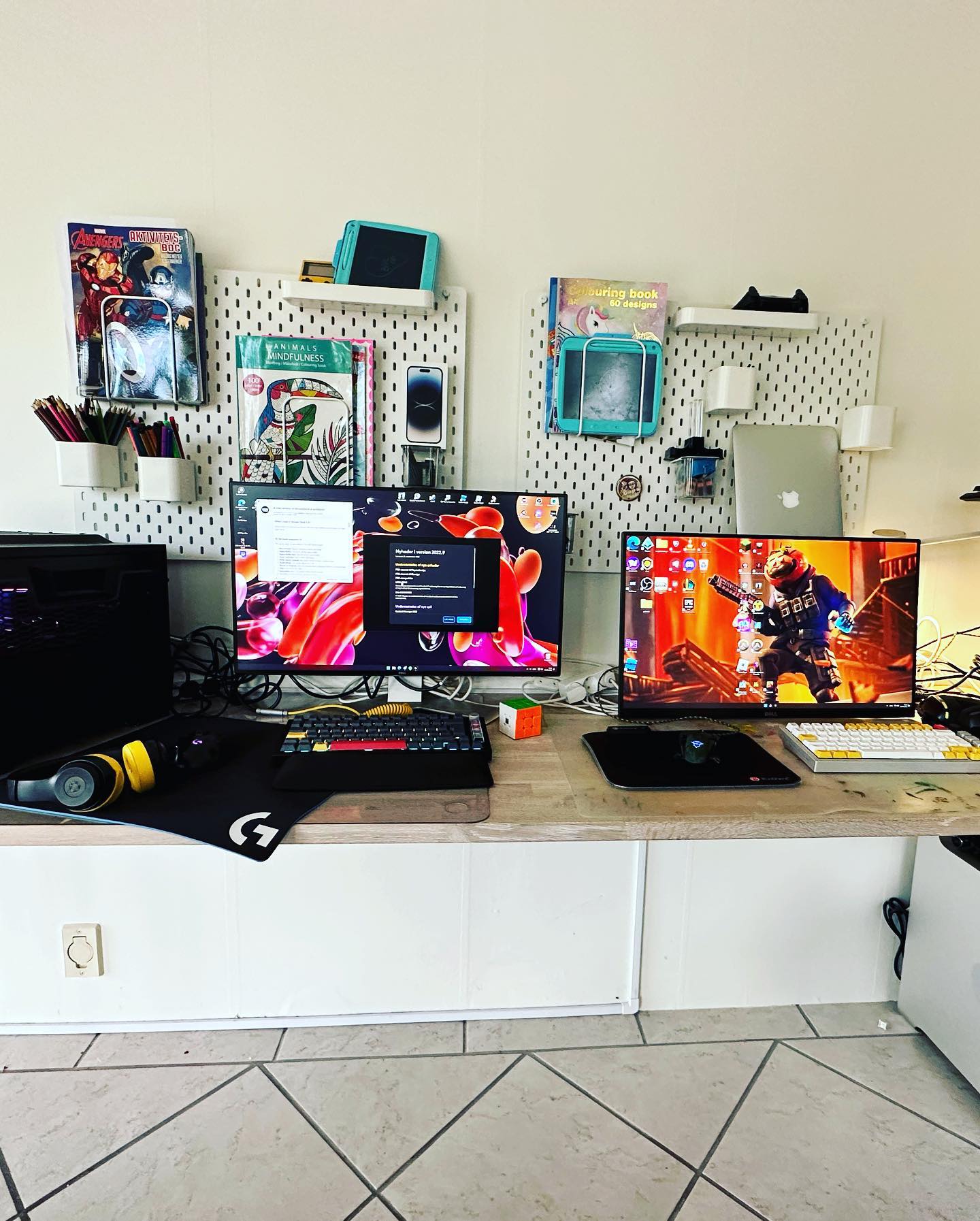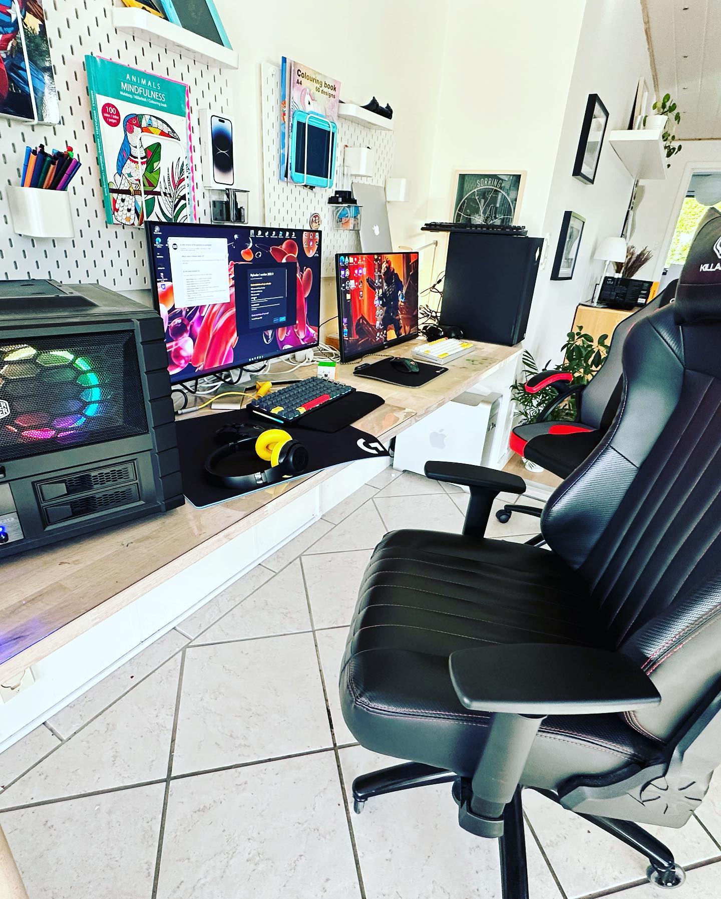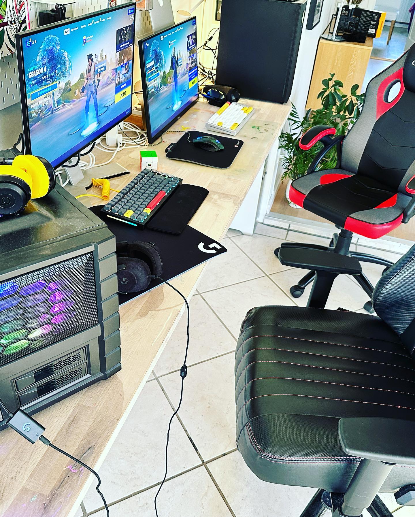LAN-party hjemme i stuen med min søn Magnus på 7 år. Vi har rykket begge vores gamer maskiner ind i stuen, og nu skal der games Roblox, Fortnite og en masse andet. Let’s gooooo!