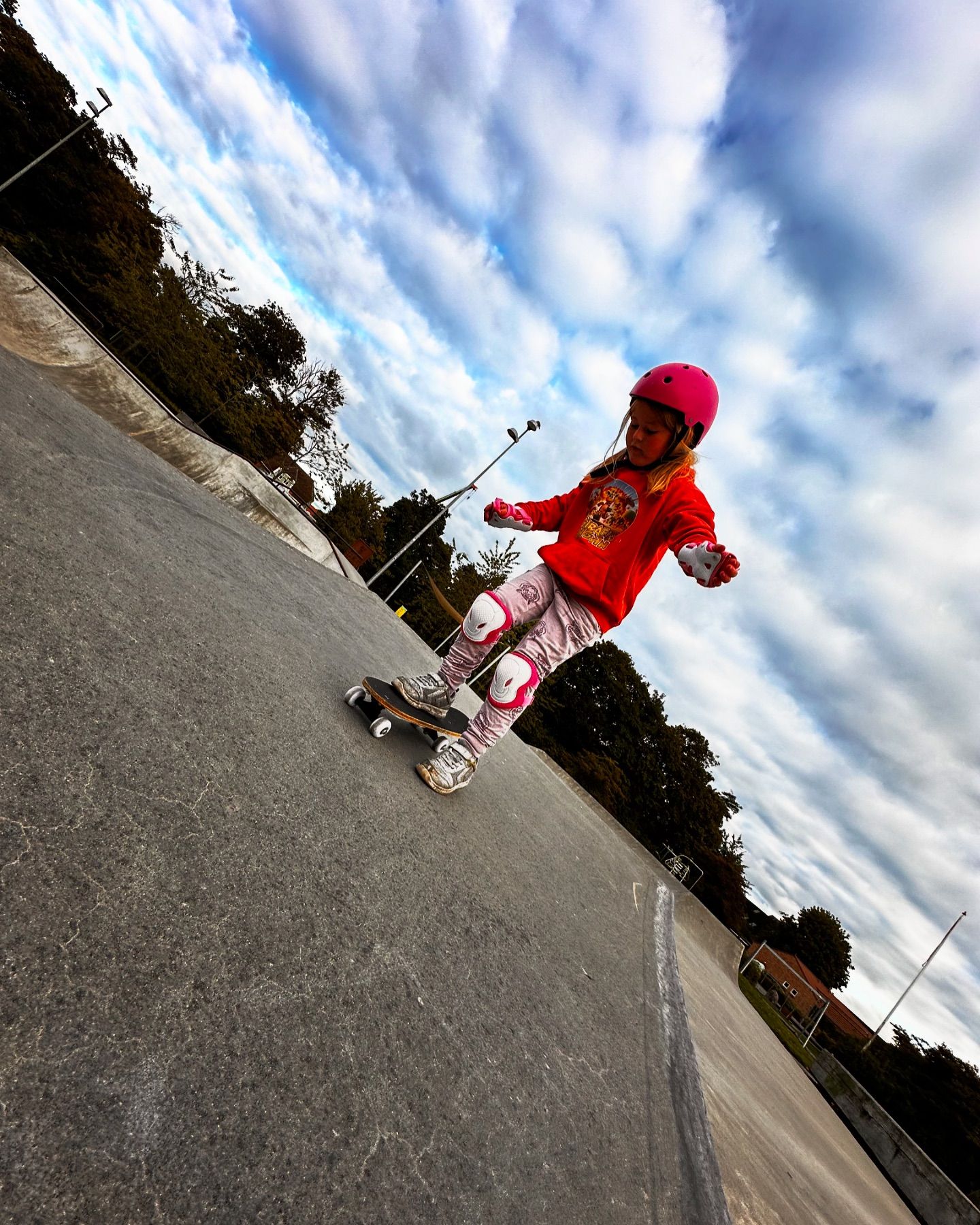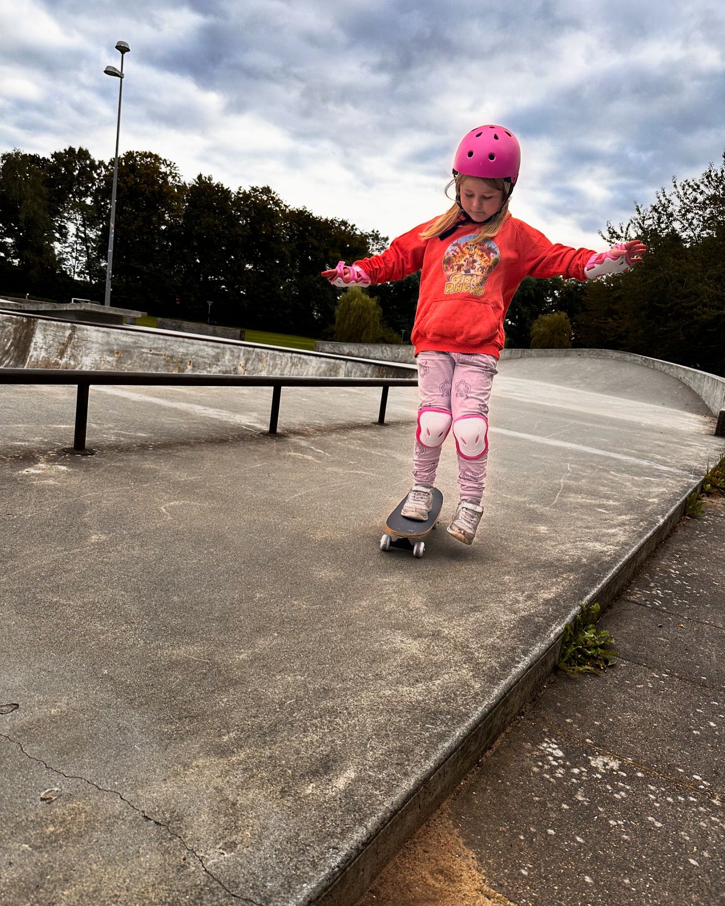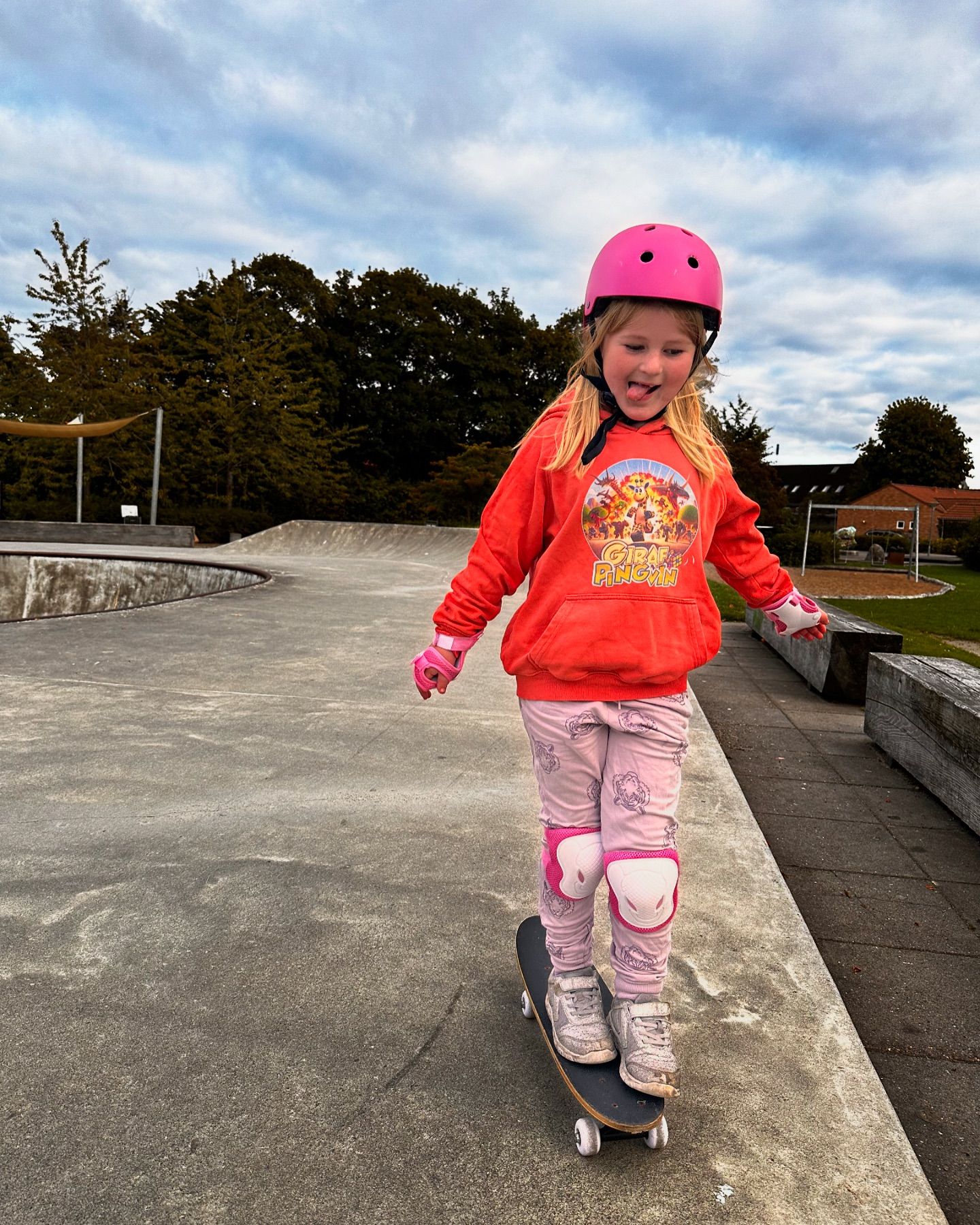 I dag har jeg været på skatebane med Tilde musen! 🛹🐭 Hun er lige blevet den stolte ejer af et splinternyt (okay, genbrugt, men stadig cool) skateboard fra genbrugsbutikken! 💪✨ Tilde er allerede blevet super sej 💯 og har lært sine første tricks (hun snublede også lidt, men hey, det er jo sådan, man lærer!). 😂🙈