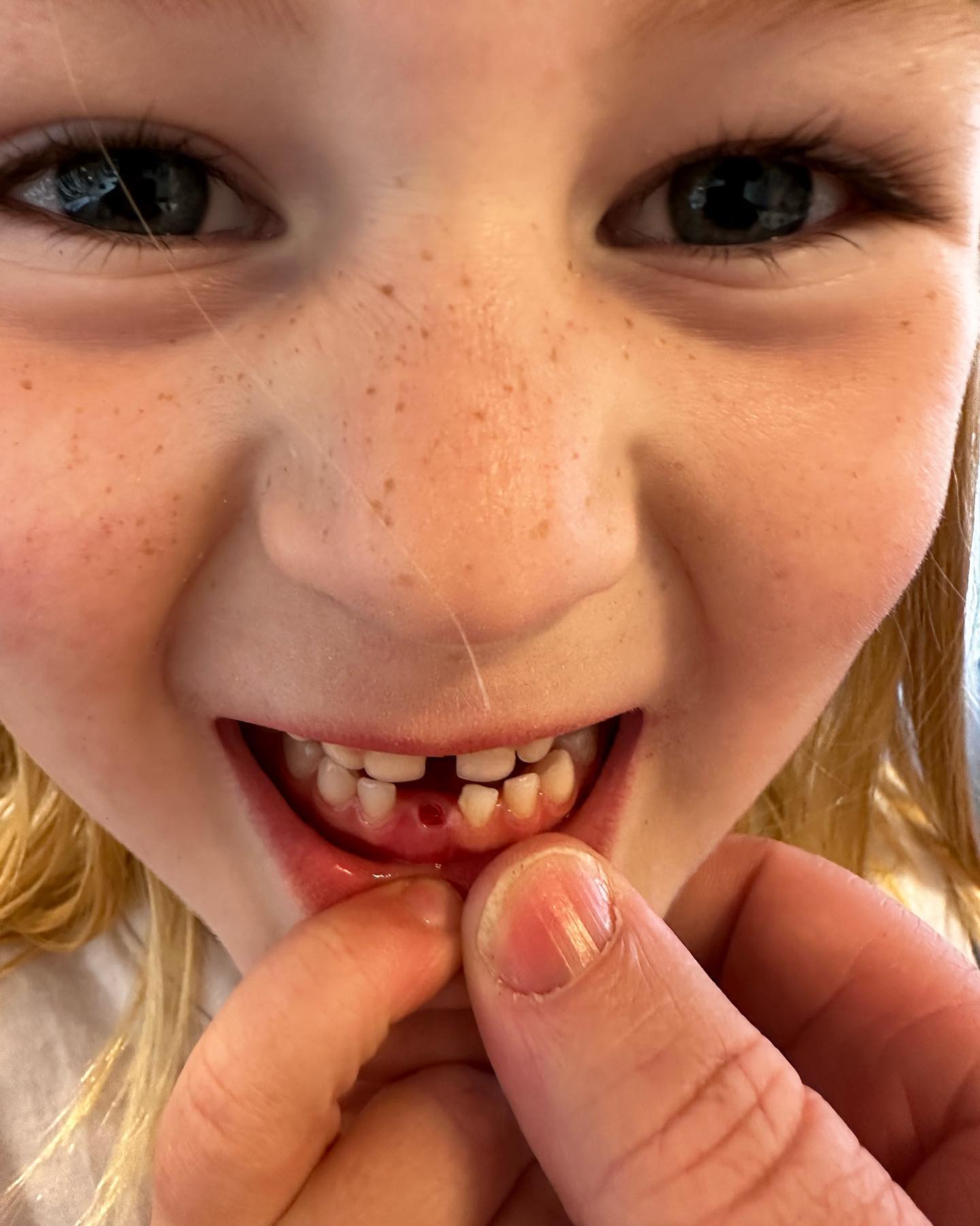 Tilde stråler med sit nye smil efter sit første tandtab! Hun glæder sig vildt til tandfeens besøg. 💛🦷🥳