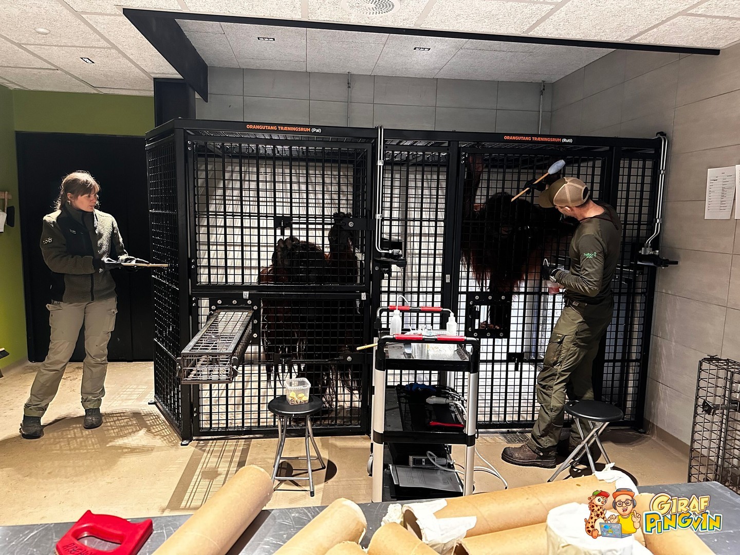 Vi fik lov til at komme med ind bag kulissen og se, hvordan orangutangerne bliver trænet. Vi kom helt tæt på både de søde og de lidt mere farlige dyr, og vi så endda to giraffer, der lavede girafbørn 🥹 aww...
