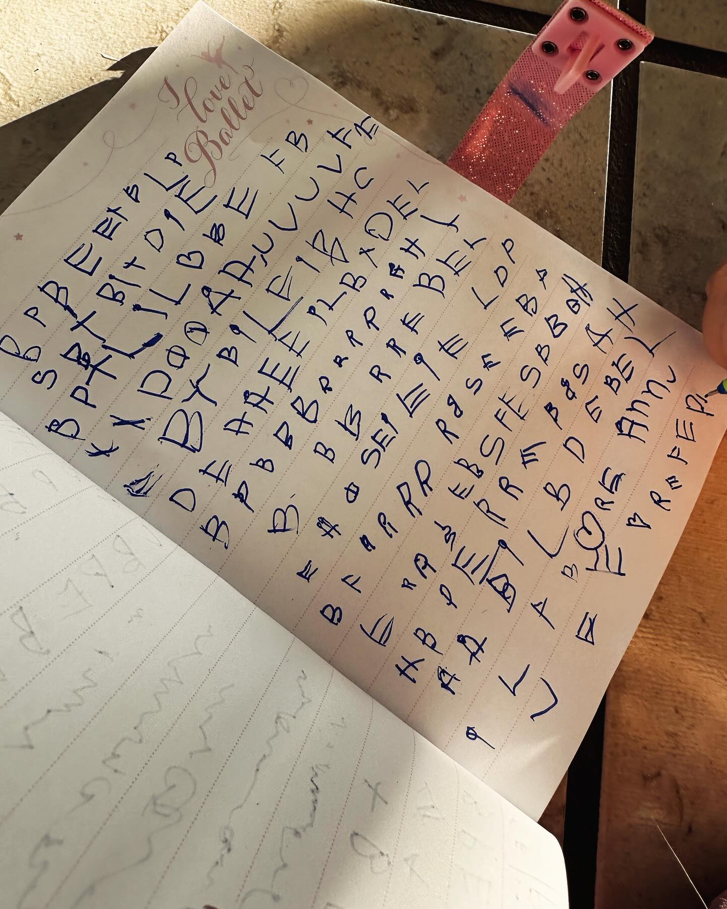 Tilde mener hun kan skrive nissesprog. Så her er hun i gang med et langt brev til Rumle hvor hun siger tak for gaverne og fortæller om sin dag 😍❤️