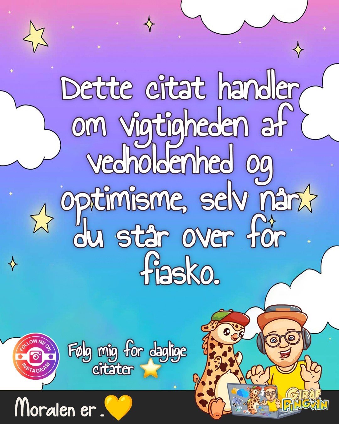 Husk altid at optimismen og vedholdenheden er to vigtige redskaber vi kan bruge, når vi rejser mod vores mål. Når du falder, tag det som en læringsproces og brug det som en motivation til at stå op igen, og fortsætte fremad!