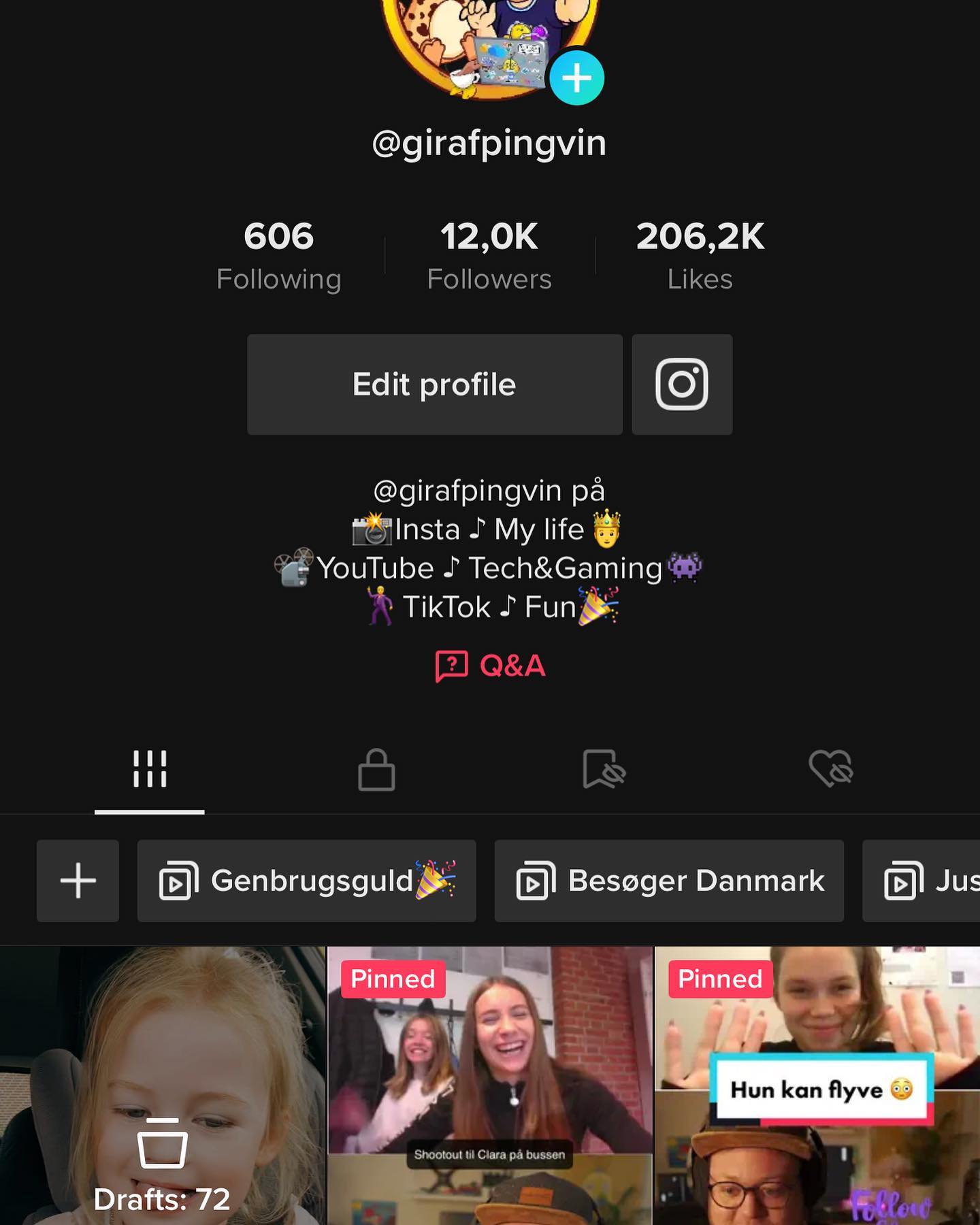 Fra girafpingvin til TikTok-stjerne: 12.000 følgere på 6 måneder! TUSIND tak for jeres støtte! 😍🧡🖤