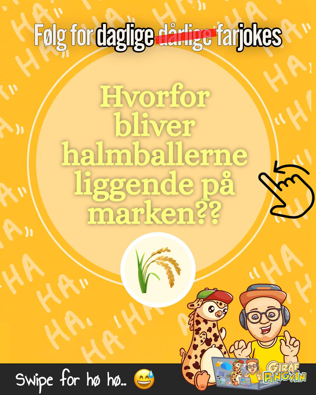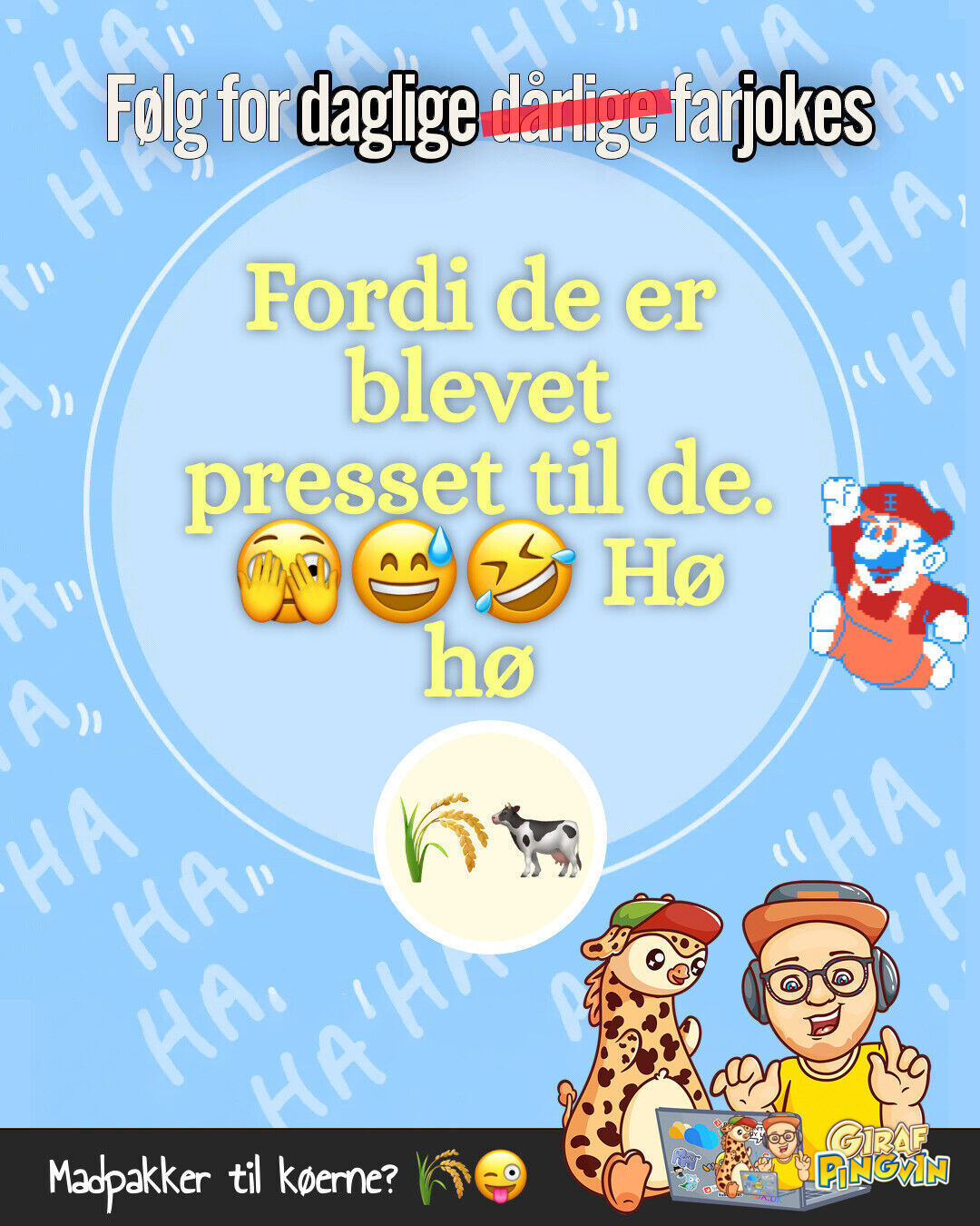 Farhumor i topklasse! Hvorfor bliver halmballerne liggende? Fordi de er presset til det! Og hvor meget hø i underbukser? To balder og en dusk! 🌾😜