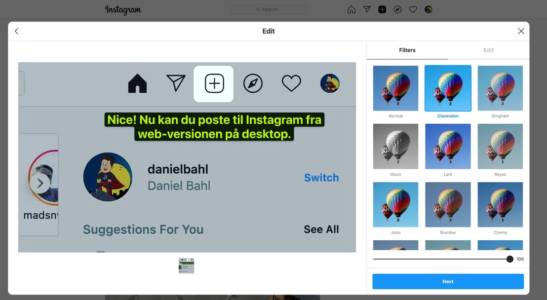 Nice! 👏 Nu kan du (endelig) poste awesome content 💯 til Instagram fra desktop-versionen af deres website. 😀️