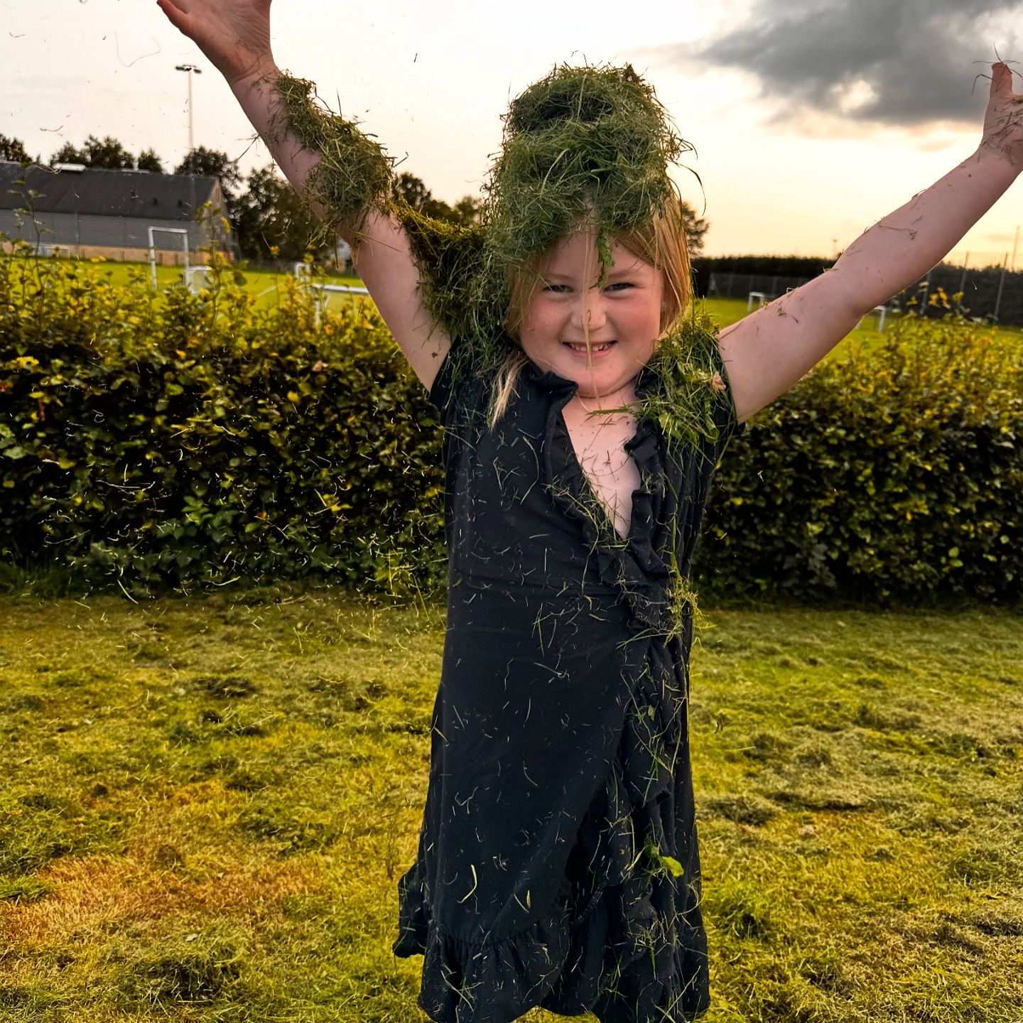 Tilde er også med på sidelinjen, men hun har skiftet fodboldstøvlerne ud med farveblyanter og musik i ørerne. 🎨🎧👑 Elsker når hun fordyber sig i kreative ting! 🤪🎵 ehh altså lige pånær græs😂😂🤪