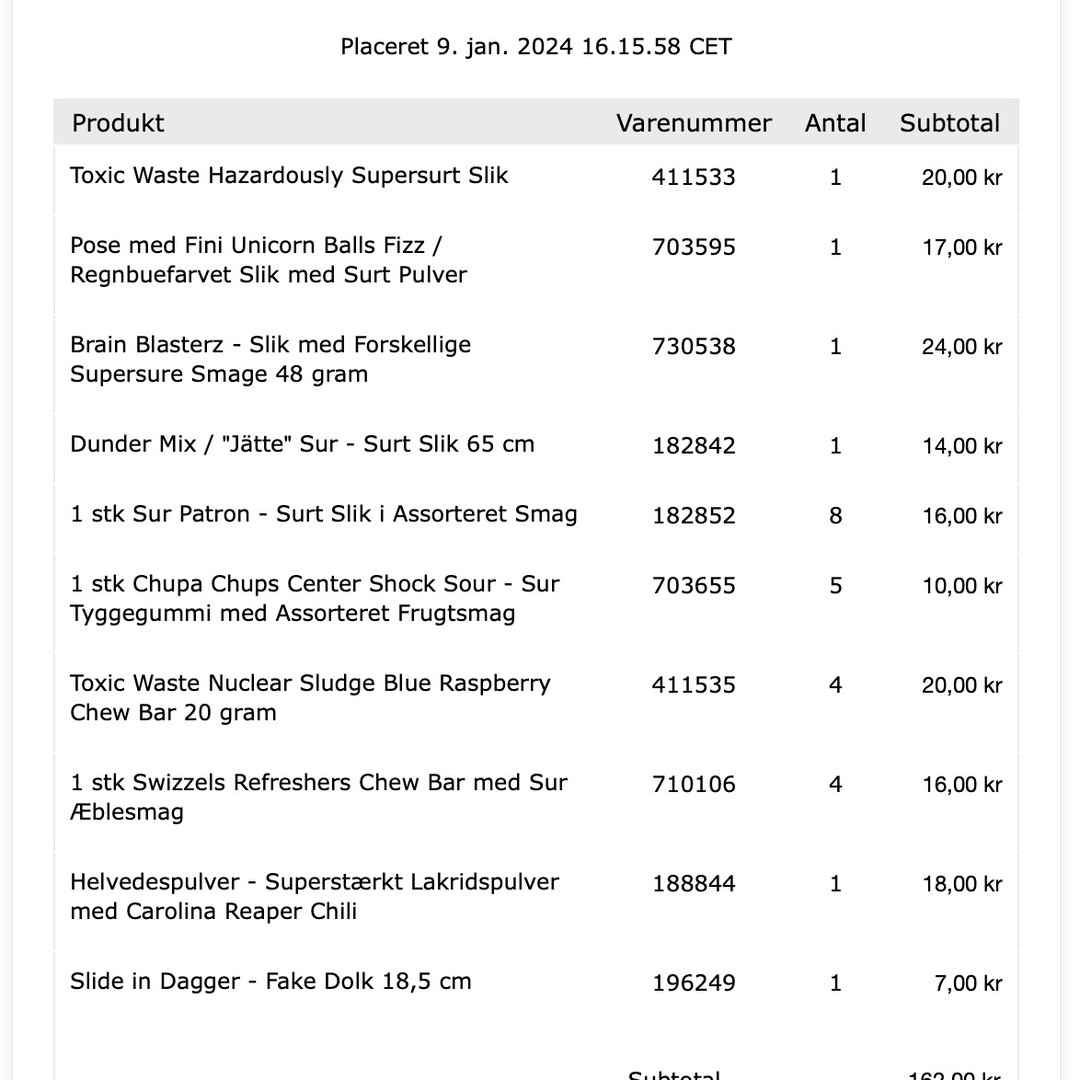 Jeg fandt noget af det mest sure slik, såsom Toxic Waste Nuclear 🤮, på en svensk hjemmeside. Nu er der shoppet ind til en kommende video 😅🤪