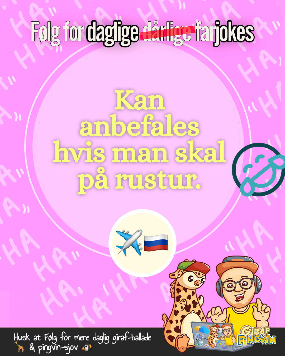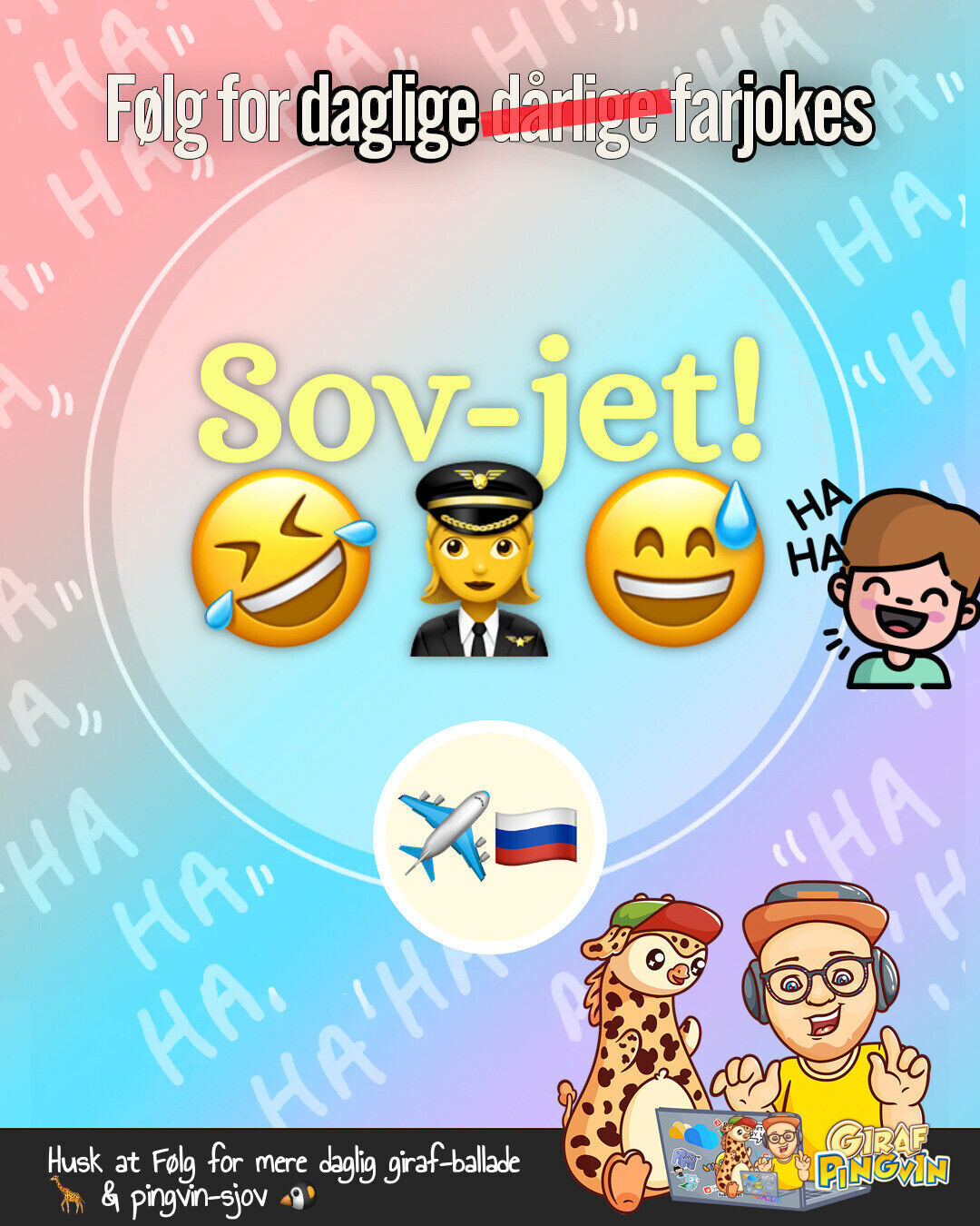 Det var her jeg kom op med verdens bedste vittighed; Jeg skal ha' en billet til en flyver mod ✈️ Sov-jet! 😂👩🏻‍✈️😅🇷🇺 Ja ja, jeg ved det. Jeg er en gammel jokester!