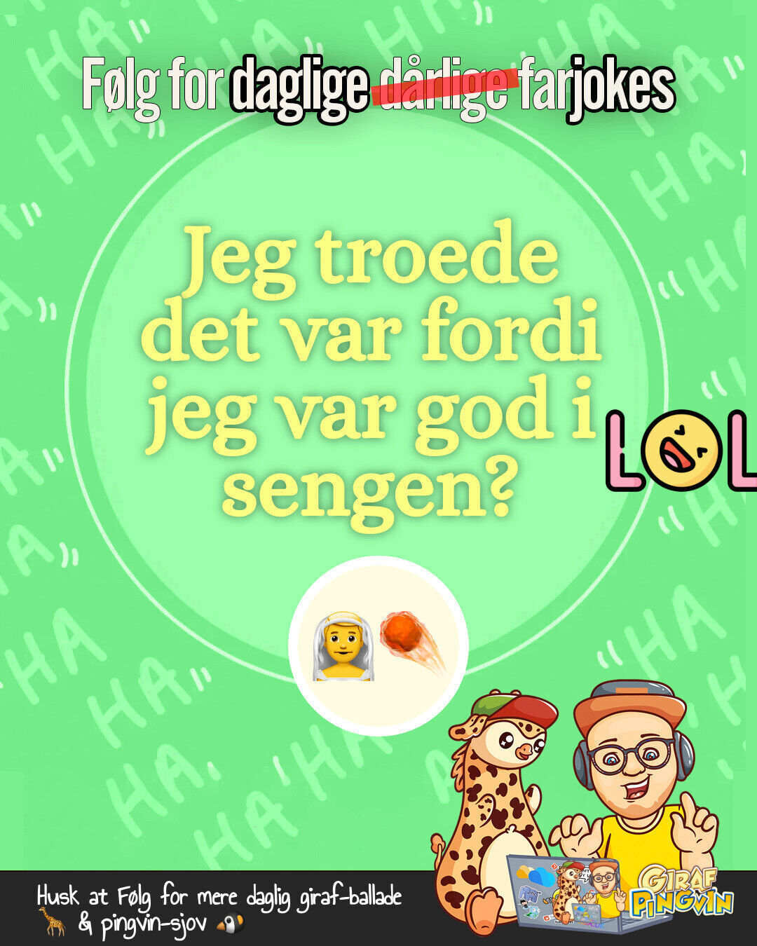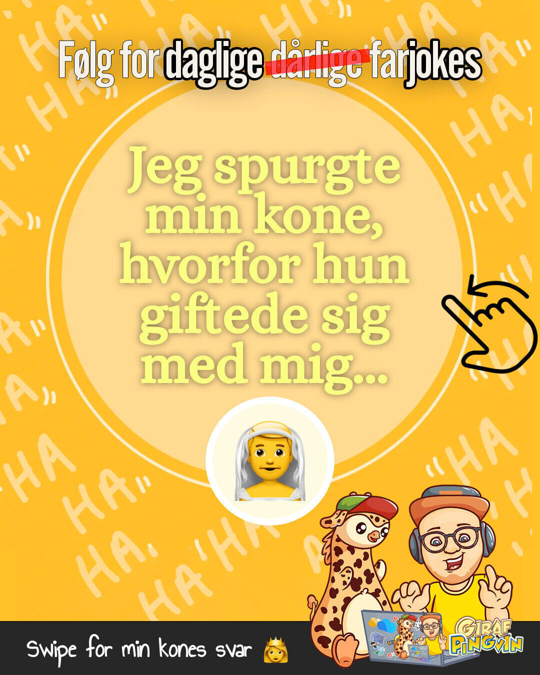 Hej alle mine girafpingvin followers! 🦒❤️🐧 Min kone har lige erklæret mig for den sjoveste mand i byen - på bekostning af mit overskud i soveværelset! 🛏️😅💔
