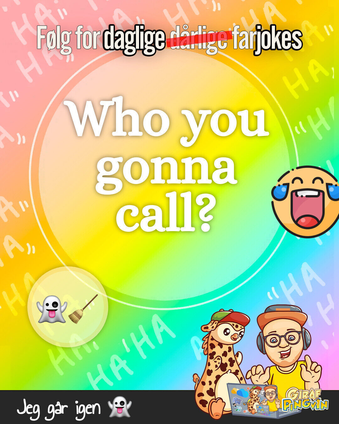 Who you gonna call? 🤔 Ikke mig ihvertfald! Jeg er travlt optaget med at lave 𝗱𝗮̊𝗿𝗹𝗶𝗴𝗲 vittigheder. 😉😂👍