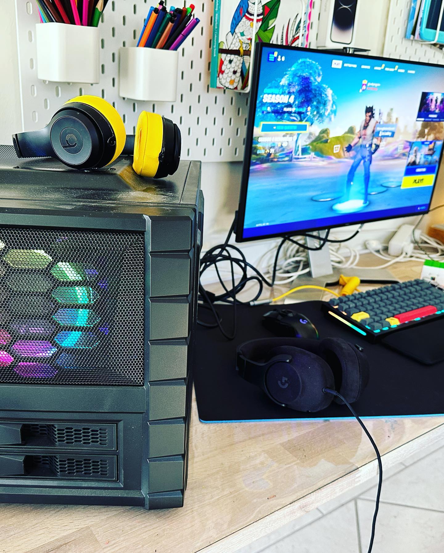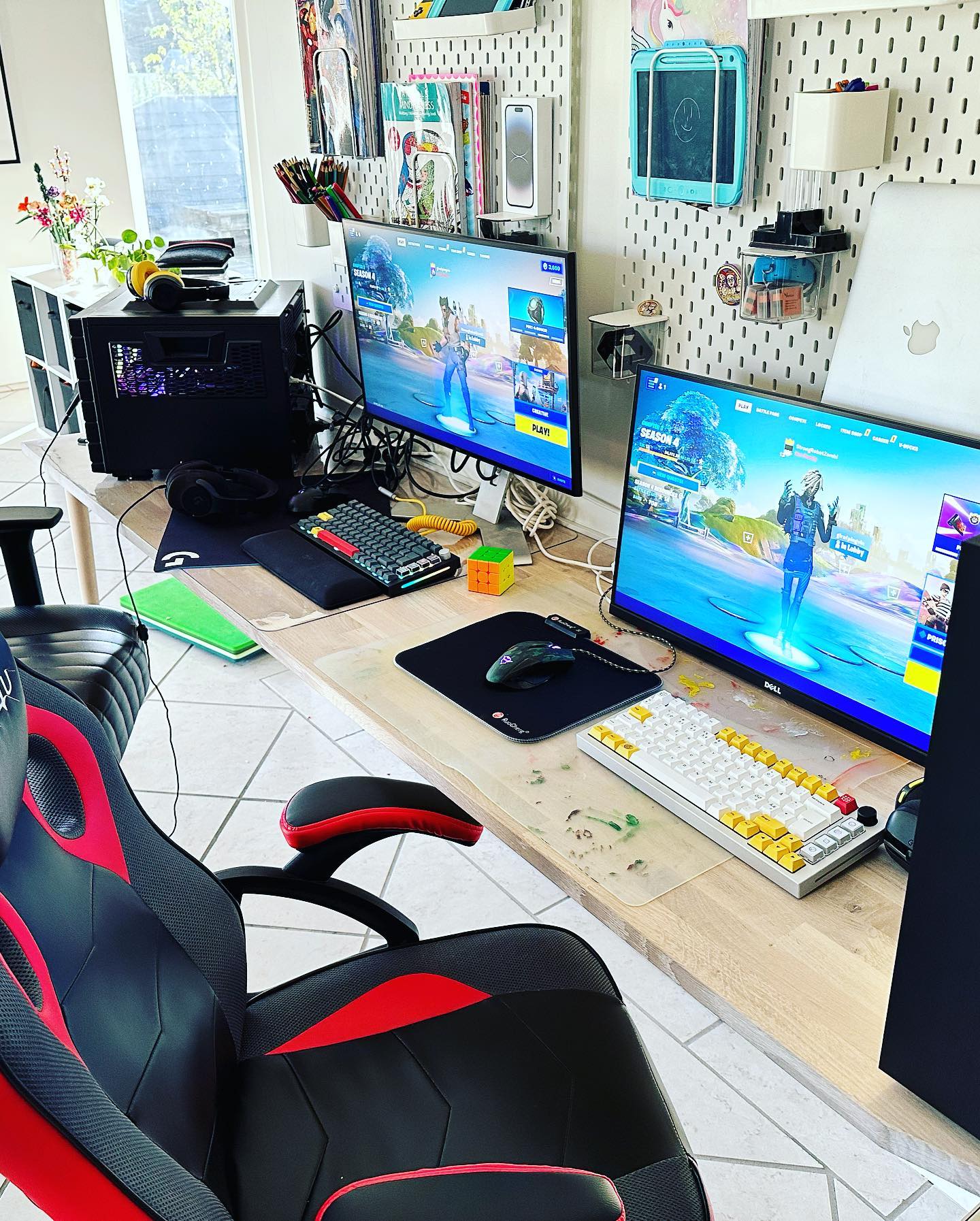 LAN-party hjemme i stuen med min søn Magnus på 7 år. Vi har rykket begge vores gamer maskiner ind i stuen, og nu skal der games Roblox, Fortnite og en masse andet. Let’s gooooo!