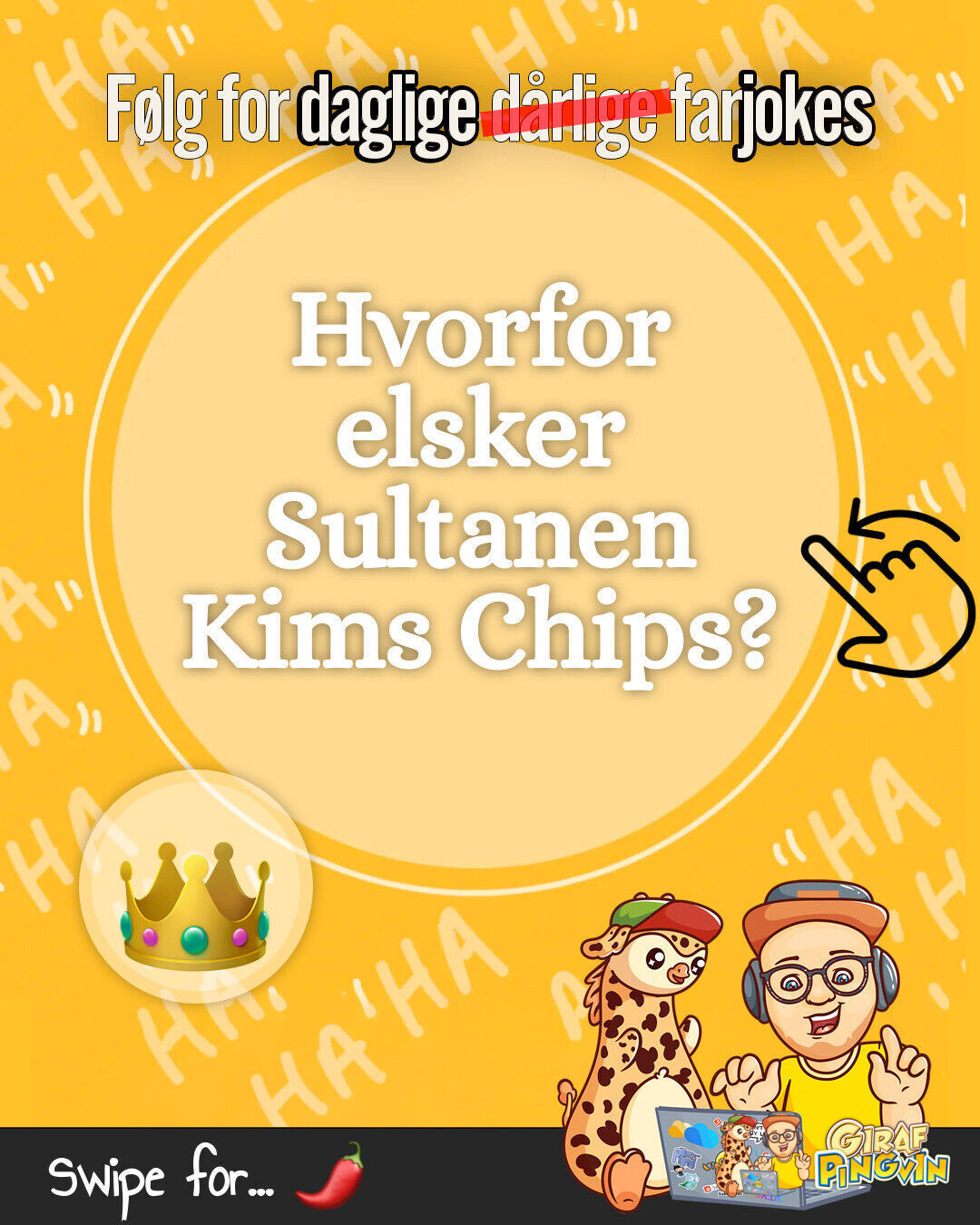 Klar til grin? Sultanen af sjov er her for at peppe din dag op med vittigheder og Kims Chips! 😂👑🍟😁