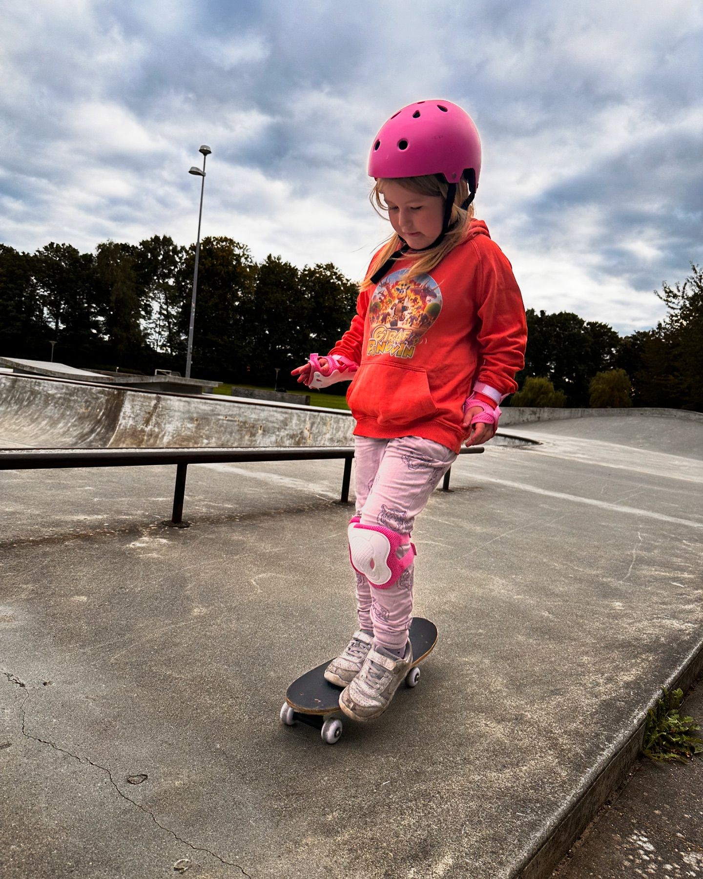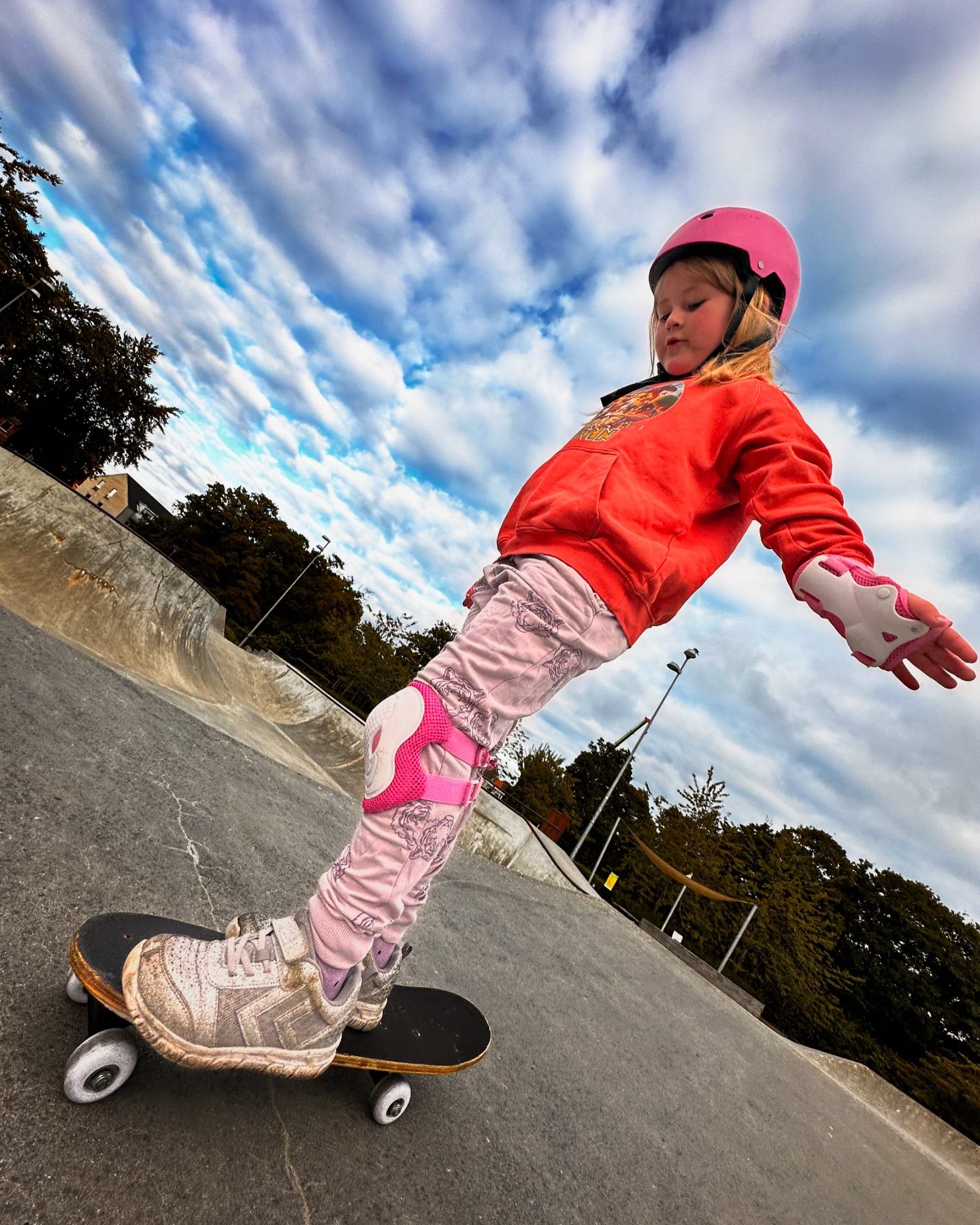 I dag har jeg været på skatebane med Tilde musen! 🛹🐭 Hun er lige blevet den stolte ejer af et splinternyt (okay, genbrugt, men stadig cool) skateboard fra genbrugsbutikken! 💪✨ Tilde er allerede blevet super sej 💯 og har lært sine første tricks (hun snublede også lidt, men hey, det er jo sådan, man lærer!). 😂🙈