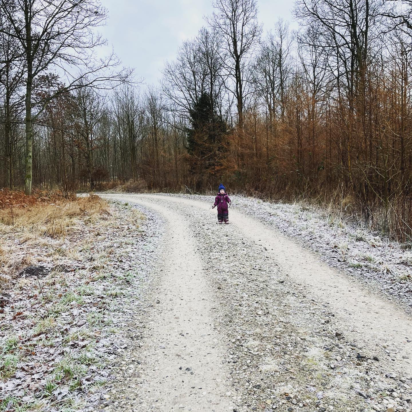 Det var en smuk dag i skoven fyldt med naturens vidundere. Tilde og jeg nød en afslappende tid omgivet af snefnug og efterårets blade.
